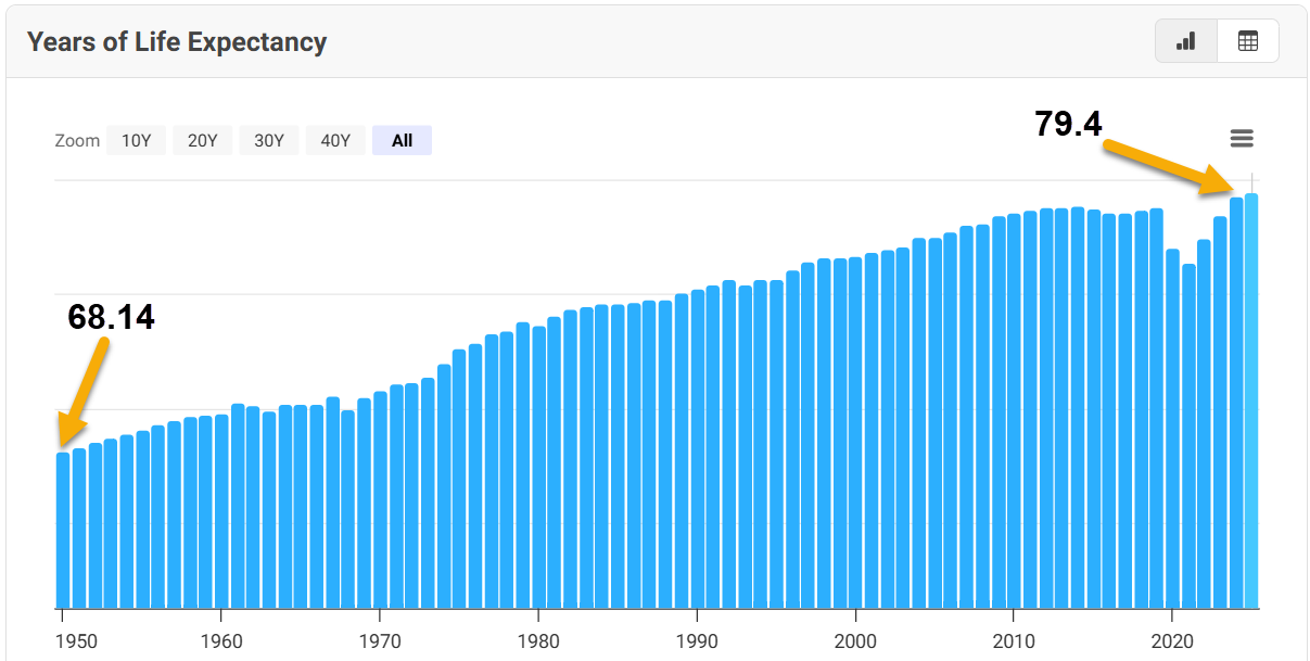 We are producing dramatically more with fewer workers. What is going on here? Technology has enabled us to not just produce and consume more but also do it for longer as healthcare technological advances have increased lifespans. This has been one of the most important macro-observations over the past thirty years with far reaching and underappreciated consequences.