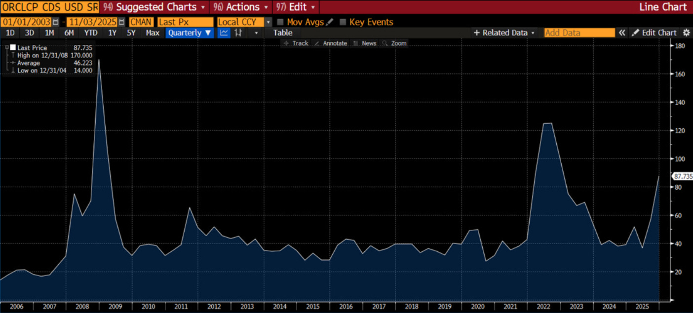 For example, the rising cost of capital for AI capex is due to the scarcity of capital today. This has been disguised by the private markets where most of this capex is being financed but not entirely. Last week we saw ORCL CDS spreads blow out on concerns related to their heavy AI capex spending.